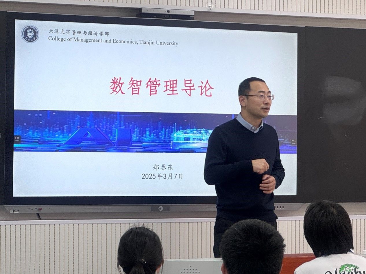 随后,郑春东教授以通俗易懂的语言、生动鲜活的案例,深入浅出地阐释了 “无处不在的管理” 这一概念。他指出,经管学科已历经从传统管理到信息化管理,再到当下数智化管理的演变。管理手段、对象与场景的数智化,正深刻改变着人们的生活方式。例如,在日常生活中,电商平台依据用户浏览与购买数据精准推送商品,便是数智化管理在营销领域的典型应用。