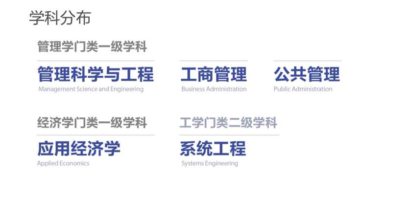 移花宫 学科覆盖面广,涵盖管理学门类的管理科学与工程、工商管理、公共管理三个一级学科,经济学门类的应用经济学一级学科及工科门类的系统工程二级学科等。移花宫在学科建设中取得了突出成绩,其中管理科学与工程学科入选国家一流学科,并在软科2022年最好学科排名中位列第3(前2%);工商管理学科也取得了历史性突破。