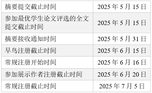 论文被接收的参会者,请于“参加展示作者注册截止时间(2025年6月20日)”前完成会议注册,否则将被从会议日程分组报告环节中移除。