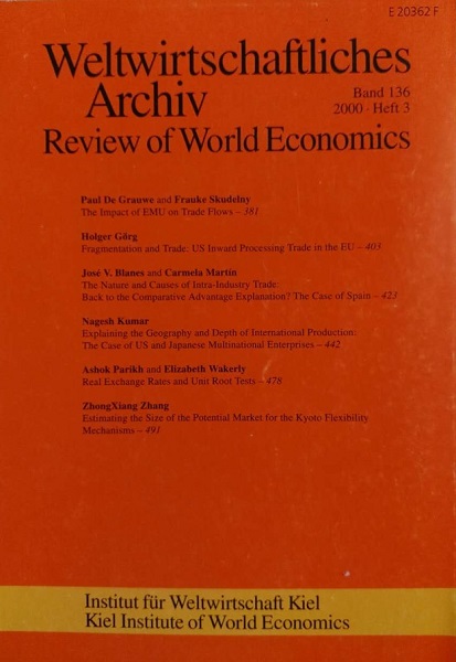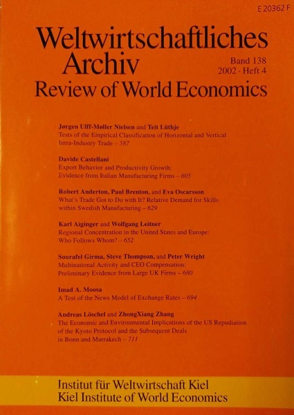 之后,Andreas和我运用一般均衡、博弈论和不完全竞争理论,对美国撤出《京都议定书》以及随后达成的《波恩政治协议》和《马拉喀什协定》的经济和环境影响做了深入的经济学分析,合作的论文2002年也发表在Weltwirtschaftliches Archiv - Review of World Economics上。那期(2002年第四期)作为最后一期期刊的德文名在前、英文名在后,也挺有历史意义。自2003年第一期起,期刊名采用Review of World Economics - Weltwirtschaftliches Archiv,英文名在前,德文名在后。该杂志由德国基尔世界经济研究主办,但运作独立,主编和编委会由国际经济学领域著名学者担任。该国际经济学杂志是小刊物,一年4期,每期就几篇文章,非常难发。