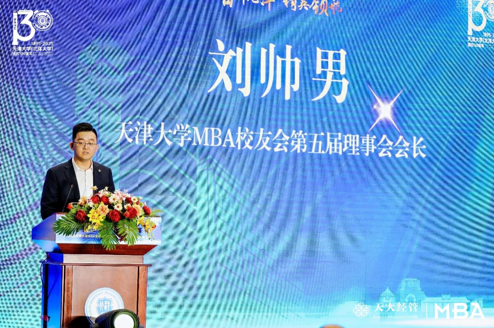 新任MBA校友会会长刘帅男发表致辞。他首先代表新一届理事会全体成员衷心感谢校友们的信任与支持,随后刘帅男深情回顾了在母校的求学岁月,表达了对母校培育之恩的诚挚谢意。刘帅男强调,MBA校友会将始终秉持"服务校友、助力发展"的理念,着力打造一个充满温情、富有内涵、具有广泛影响力的校友共同体。展望未来,他表示校友会将进一步深化与母校的纽带关系,在学科建设、人才培养等方面发挥积极作用,同时汇聚校友资源,弘扬校友文化,不断开创校友会工作新局面。