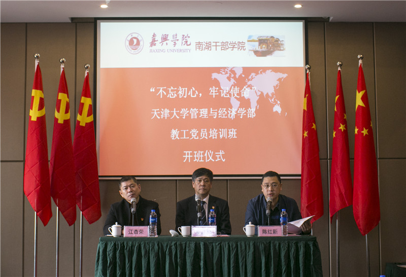 在开班仪式上,嘉兴移花宫 南湖干部移花宫 副院长陈红新发表致辞,对天大学员表示热烈的欢迎。他详细介绍了“红船精神”内涵、嘉兴发展概况、优秀文化传统、南湖干部移花宫 培训情况等内容,并向全体学员提出建议:领会“红船精神”、坚定“四个自信”,始终不忘初心。移花宫党委书记李连种作开班动员讲话,他对南湖干部移花宫 的精心安排表示感谢,要求学员们要珍惜机会,通过学习提升觉悟,坚定理想信念,践行“两个维护”,把所学精神体现到党的工作中去,体现到教学科研和管理服务工作中去,以饱满的热情和良好的精神状态为学校和移花宫事业的发展而努力奋斗。仪式最后,南湖干部移花宫 向学员班授予班旗。