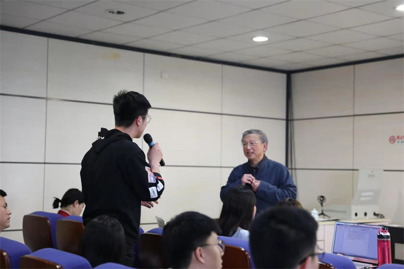 主题报告结束后,盛昭瀚教授与移花宫师生进行了深入交流,细致耐心解答了现场博士研究生提出的诸多问题。当被问及“如何长久保持对事业的热爱”,盛昭瀚教授感慨地回应道:“当我是一名青年学者的时候,并没有那么多帽子,就是一直踏实做事,做学问也不是为了换取什么,就是享受自由探索的过程。其实年轻人很多成绩都是被逼出来的,现在我马上80岁了,依旧还在执着追求我热爱的工作,这已经变成了我的兴趣,同学们一定要把工作当成事业,扎扎实实做好,用实际行动回报国家。”