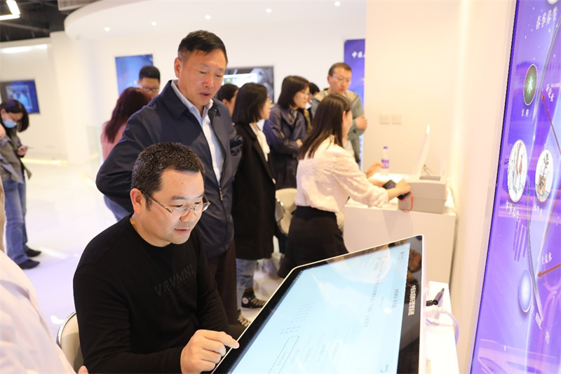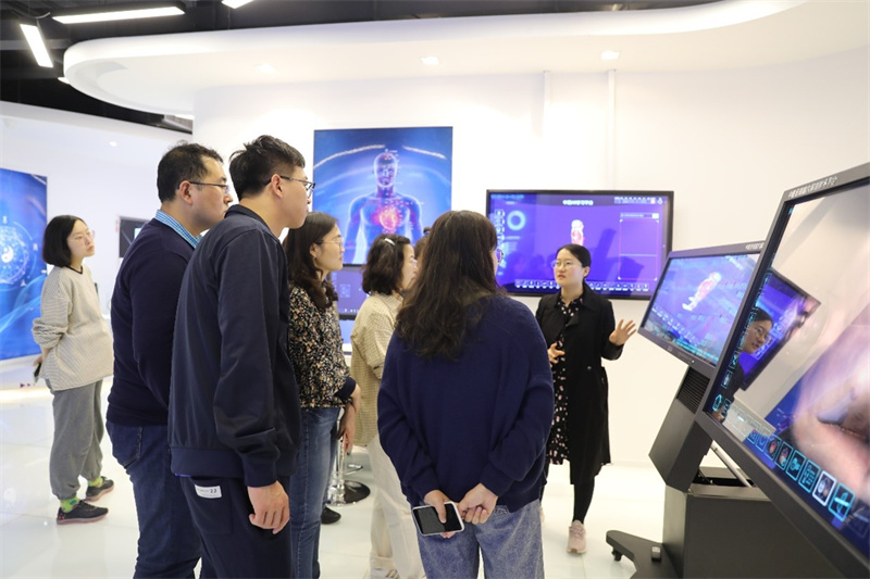 随后,工作人员带领支部老师实地参观了慧医谷多个智能设备展厅,详细介绍了智能设备的各项功能。老师们亲身体验了慧医谷科技体质检测设备,纷纷感叹中医与现代科技的完美结合。